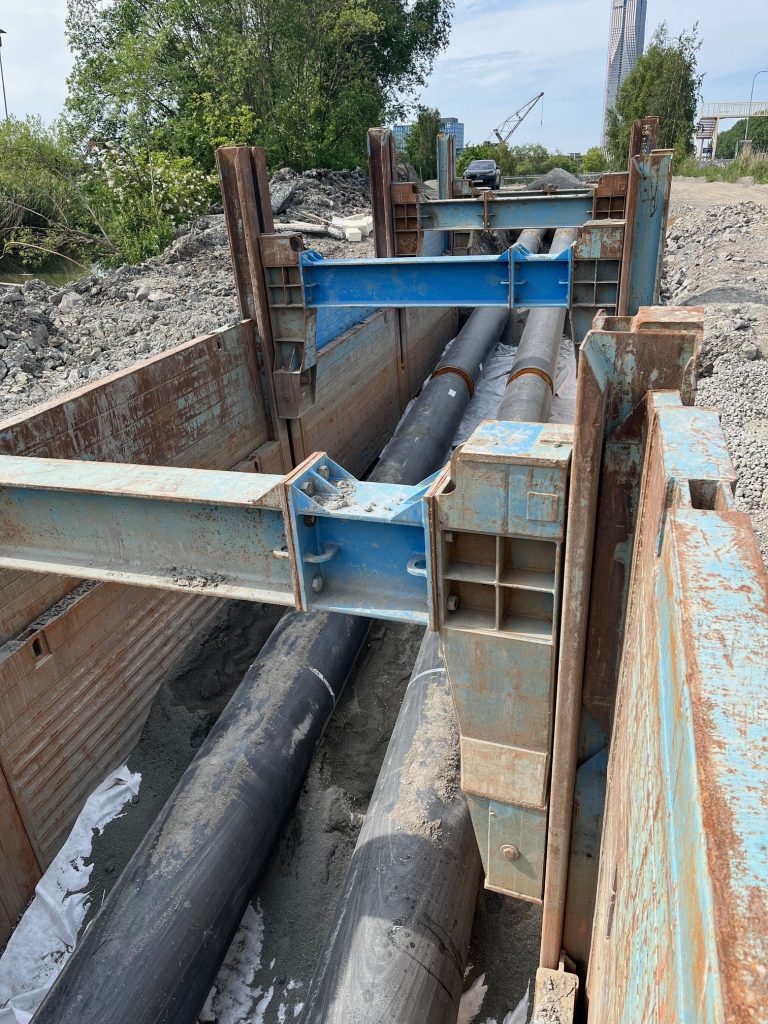 Schakt och förläggning av ca 2000m Fjärrvärmeledningar dim. 600. Entreprenaden omfattade även omläggning av högspänningsledningar vid Kvillebäcken.